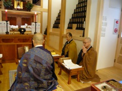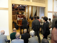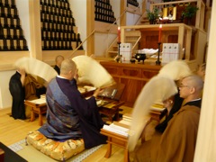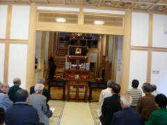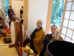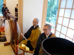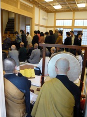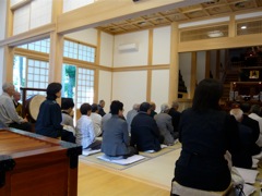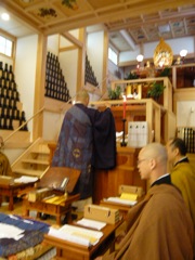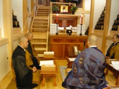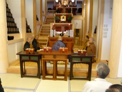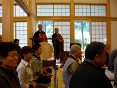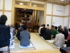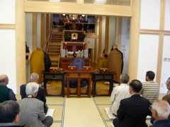 この日は三尺坊大権現をを菩提寺に奉安された、鳳仙寺25世で穆山瑳英大和尚の百回忌にあたりましたことから、その法要が本堂で営まれました。大祭参列の檀信徒は、まず、その百回忌法要に参列。それから常磐殿に移っての大祭となりました。