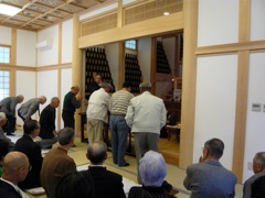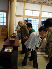 参列者は、大祭終了後に火防守護の御札をいただいた後、境内の樹本の下に用意された、菩提寺心づくしの昼食をなごやかな雰囲気の中で食して、それぞれに帰宅の途につきました。晴れやかな秋晴れの空同様に、本当にさわやかな三尺坊大祭でした。