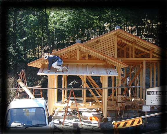 下から見上げると化粧垂木や木小舞がきれいに仕上がっています。