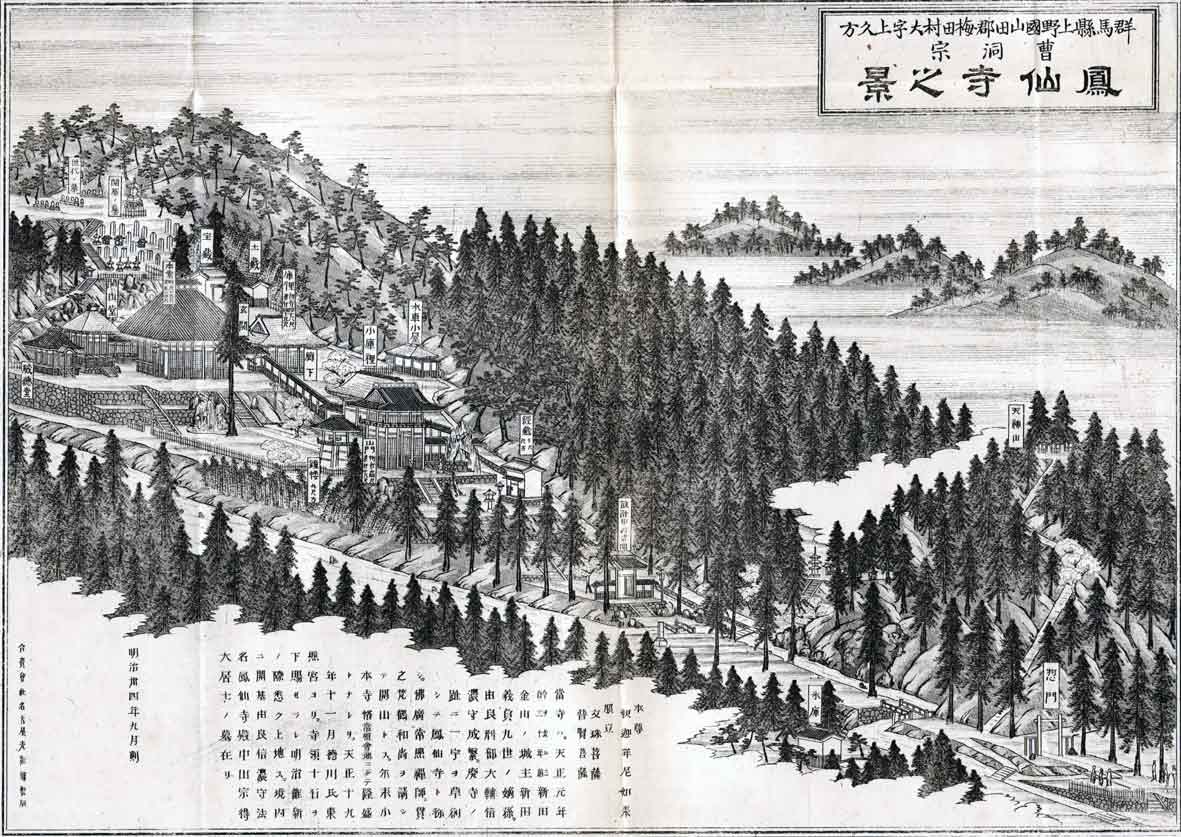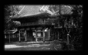 山門と鐘楼座禅堂はすでに見あたらないが長廊下は見られる。