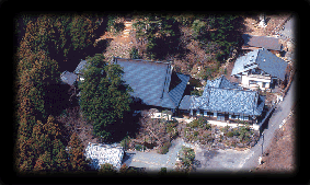 空からですと、残念ながら二階建ての楼門、鐘楼、輪蔵、開山堂、秋葉堂、水屋などの建物。500メートルの参道途中に点在する、石門、威徳の滝、大灯籠は、木々に隠れて見えません。