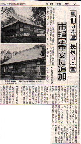 平成14年3月、鳳仙寺本堂、桐生市指定重要文化財〈建造物〉に指定されました。