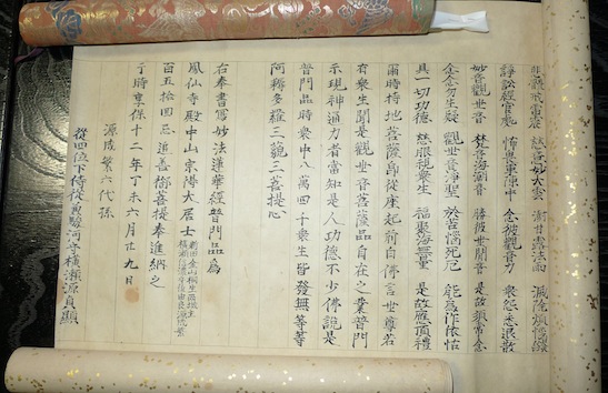 享保十二年(一七二七)開基・成繁公六代の孫、横瀬貞顕公が、開基の百五十年遠忌を執り行い、五輪塔を修建し、先祖供養にと経文二巻を進納されました。