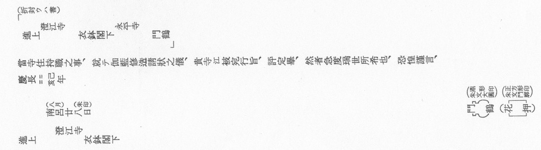 しかし、慶長三年八月二八日の時点では、現住はいまだ祚玖(球)が勤めていた。そして、しばらくして、同年冬には門鶴が現住となっていたのである。門鶴の正式な永平寺入院は、慶長三年の晩秋から冬にかけてである。むろん一年後の慶長四年八月二八日に澄江寺(寒河江市木町)に宛てた「永平寺瑞世請状」(『山形県史』古代中世史料1、二六〇頁)には、