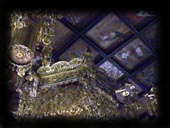 これに対し廊下の格天井は四行二十九列の面に、人物(七福神その他)が十八面、花鳥獣が九十八面圃かれている。人物は七福神以外はさまざまで、花鳥獣の図もそれぞれでる。左隅に駕寵が、中央に額が飾られていて、見えにくい部分もある。