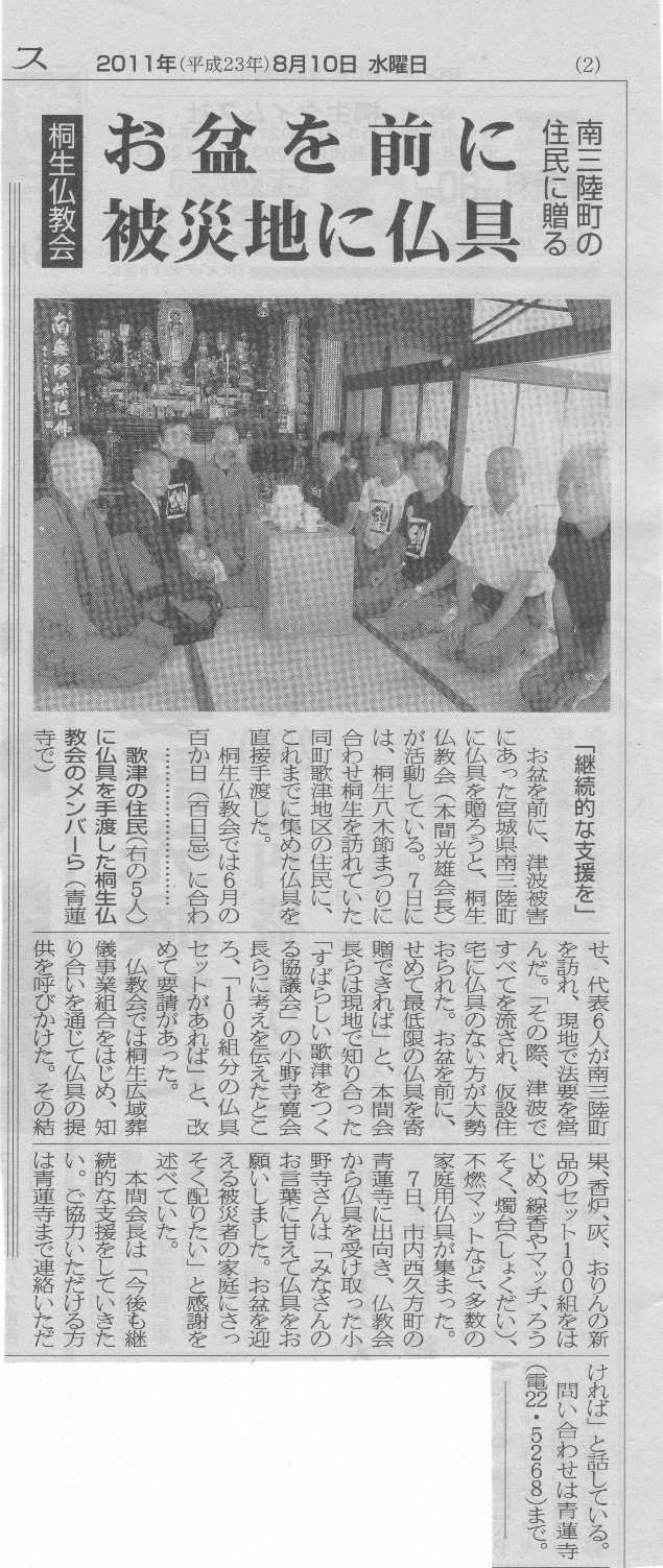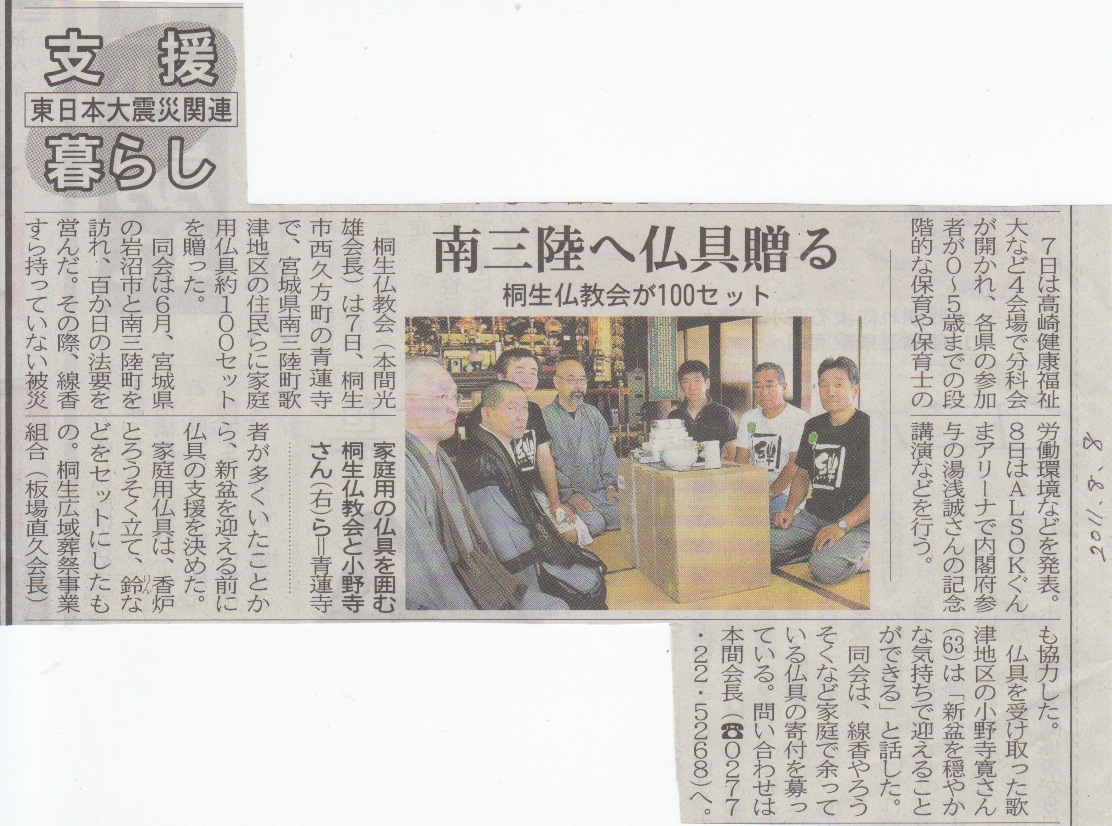 南三陸に仏具を送る お盆を前に被災者に仏具