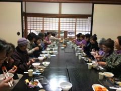 頑張った後は、おにぎりと豚汁の昼食とおしゃべりです。