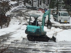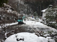 この日は大雪でした。鳳仙寺は、丸本土建さんと雪の日は、重機による雪かきを年間での約束でお願いしています。