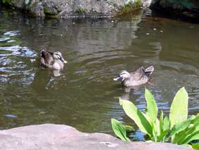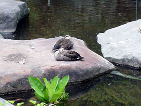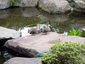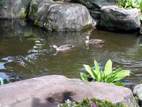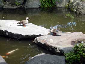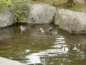 最近鳳仙寺中庭の池に鴨の夫婦が飛んできます。